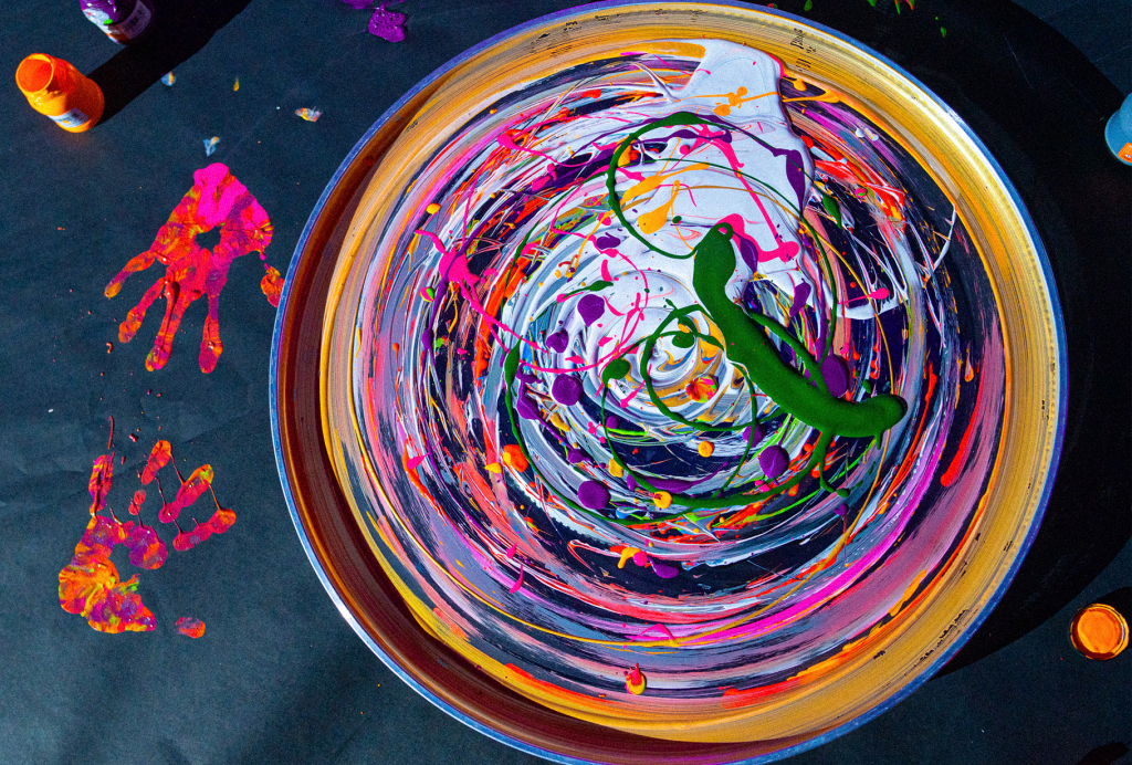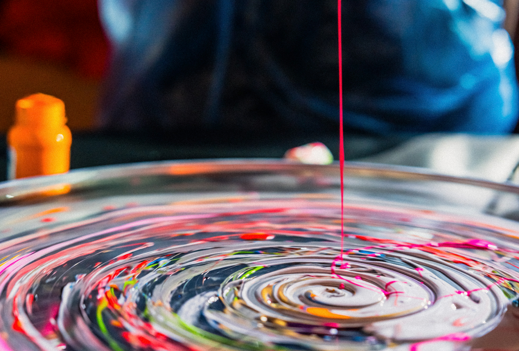 As the music played and a drumhead spun at 33⅓ RPM, the same speed at which the master disc was cut the listeners, immersed in deep listening, picked up brushes and paints to translate revived sensations into abstract forms full of color and energy-laden strokes.