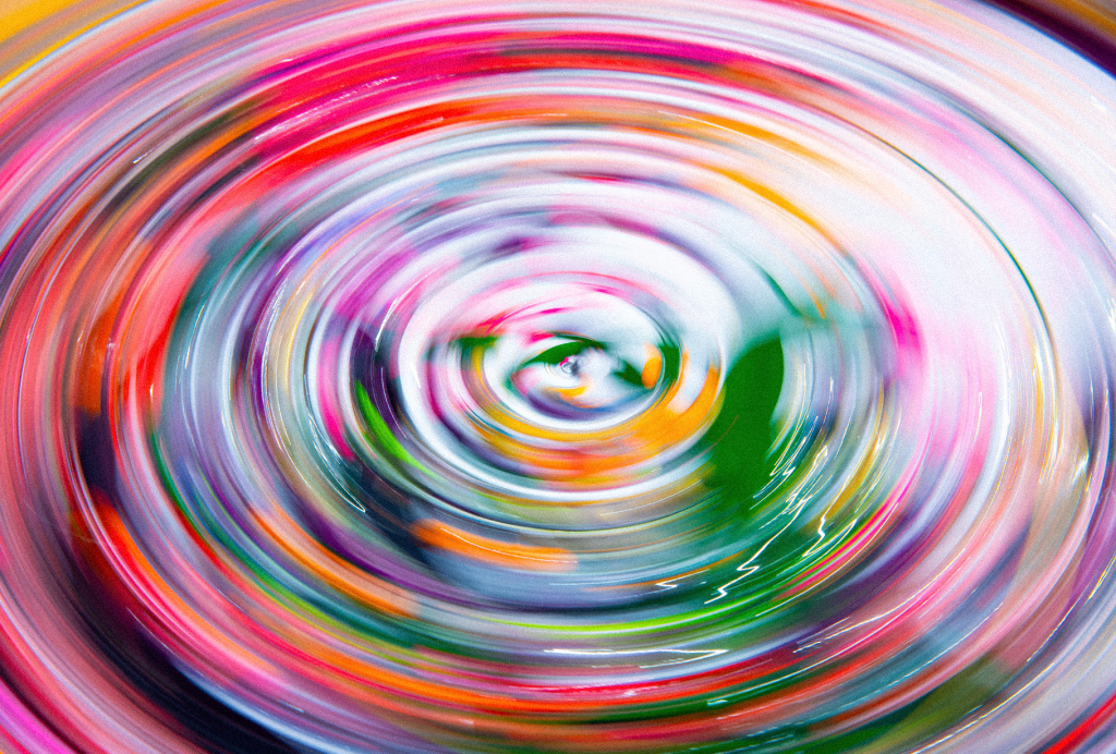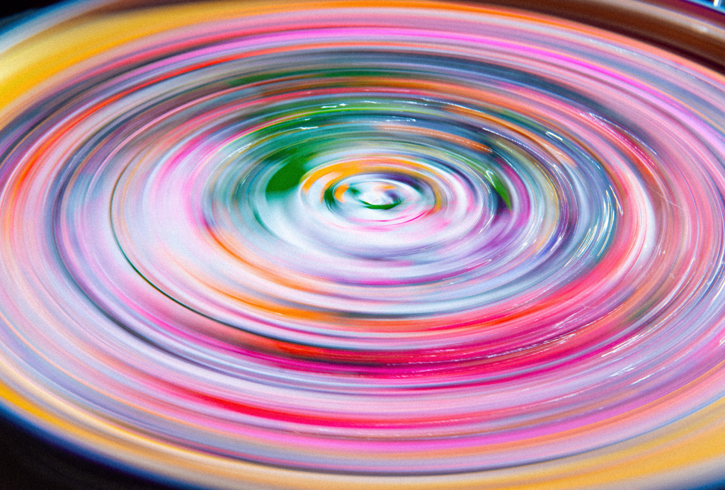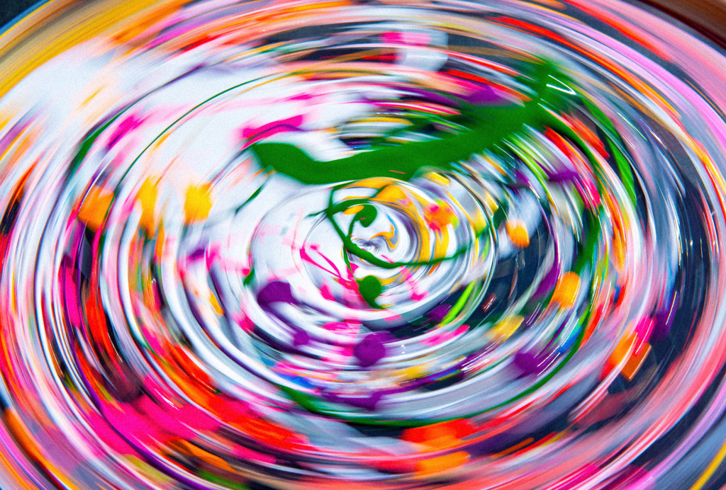 Colors from the live show are projected and distorted through the record’s center hole