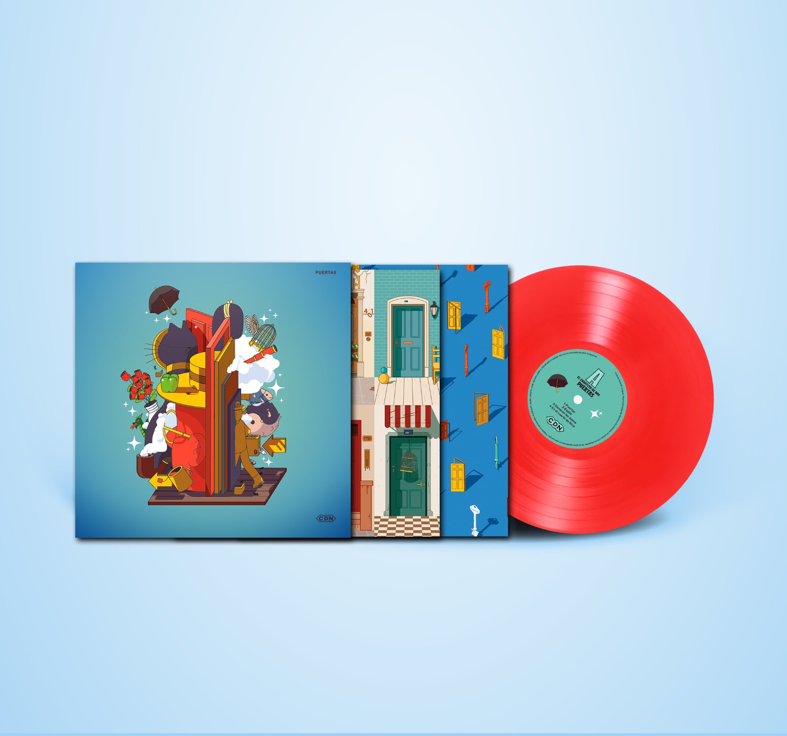 VINILO 12″ ROJO, INSERTO CON LETRAS Y FUNDA INTERIOR IMPRESA